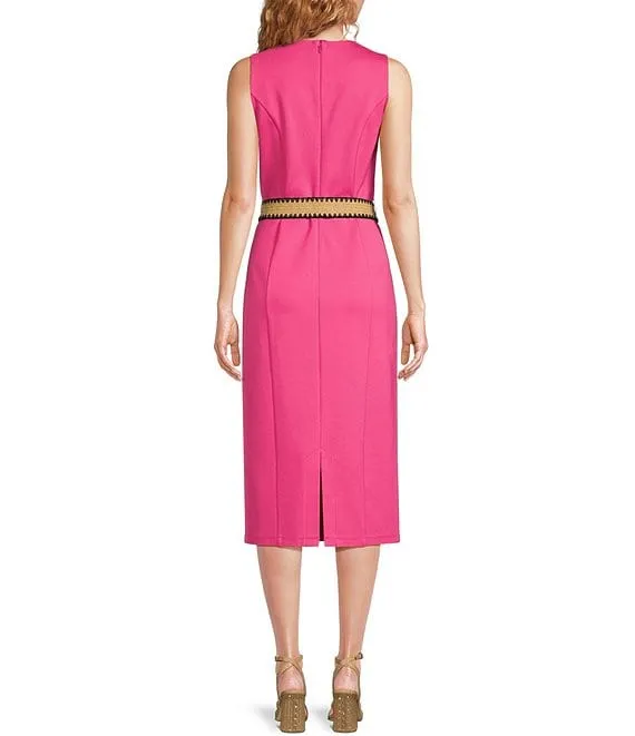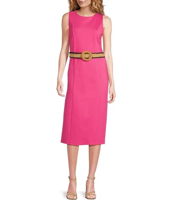 Belted Round Neck Sleeveless Sheath Knee Length Dress