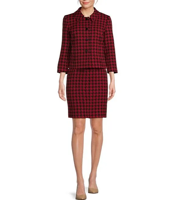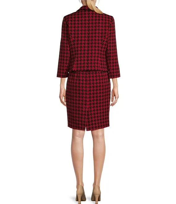 Crepe Houndstooth Print Peter Pan Collar Long Sleeve Jacket Dress Set