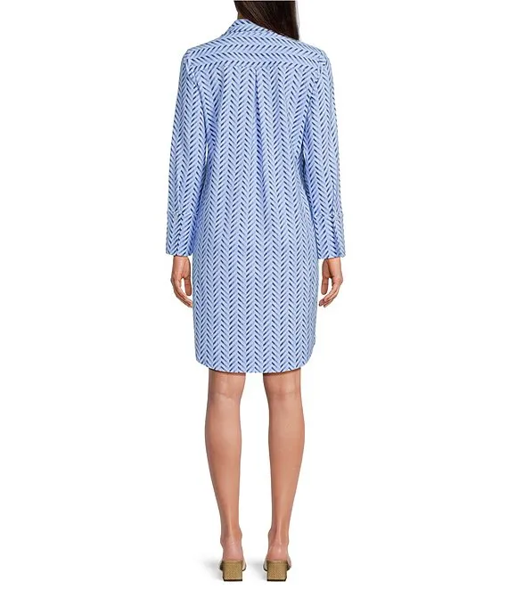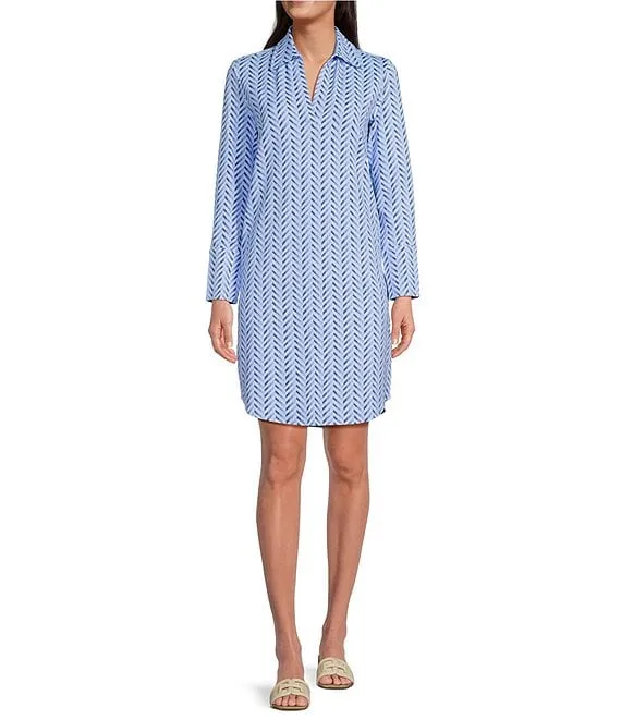Charlee Chevron Print Collared V-Neck Long Sleeve Hi-Low Hem Shirt Dress