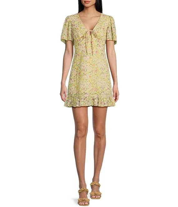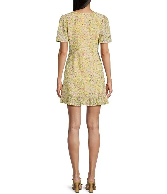 Floral Print Square Neck Short Sleeve Dress