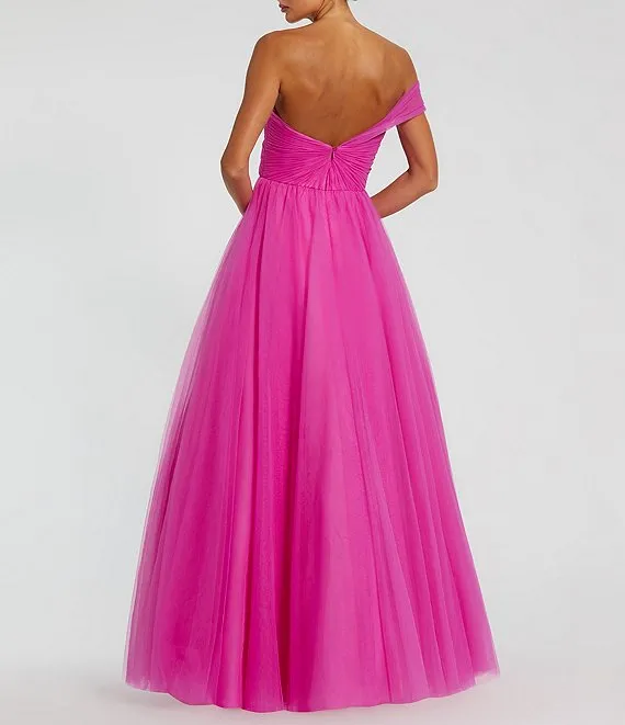 Mac Duggal One Off the Shoulder Bustier Ball Gown