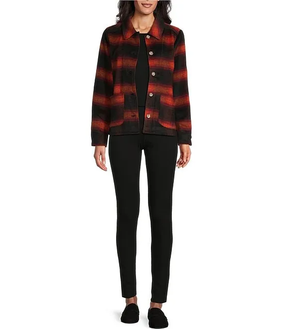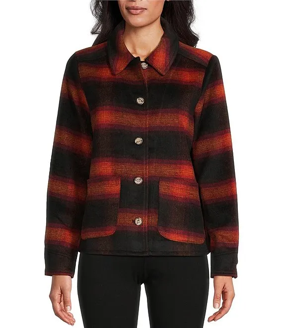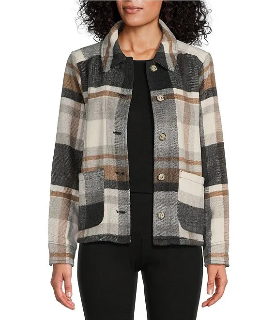 Plaid Point Collar Long Sleeve Button-Front Jacket