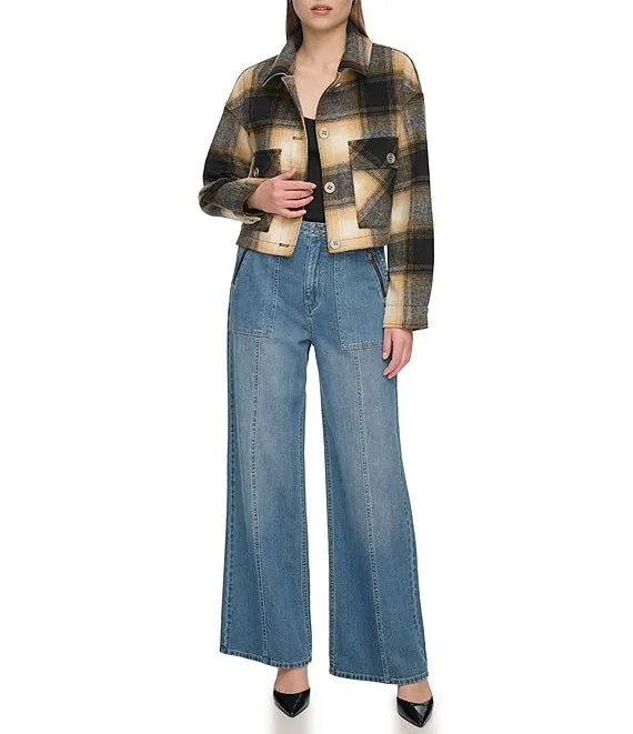 Plaid Point Collar Long Sleeve Button Front Jacket
