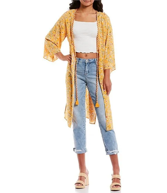 From Jessica Simpson, this kimono features: