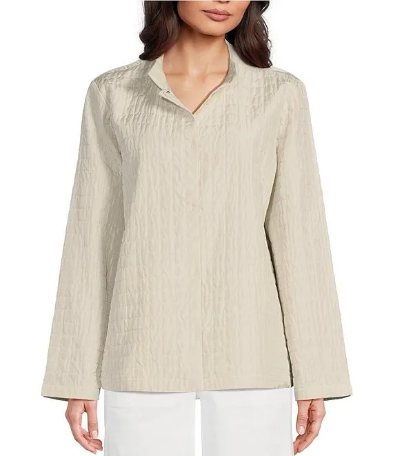 Silk Habutai Stand Collar Pocketed Long Sleeve Quilted Jacket