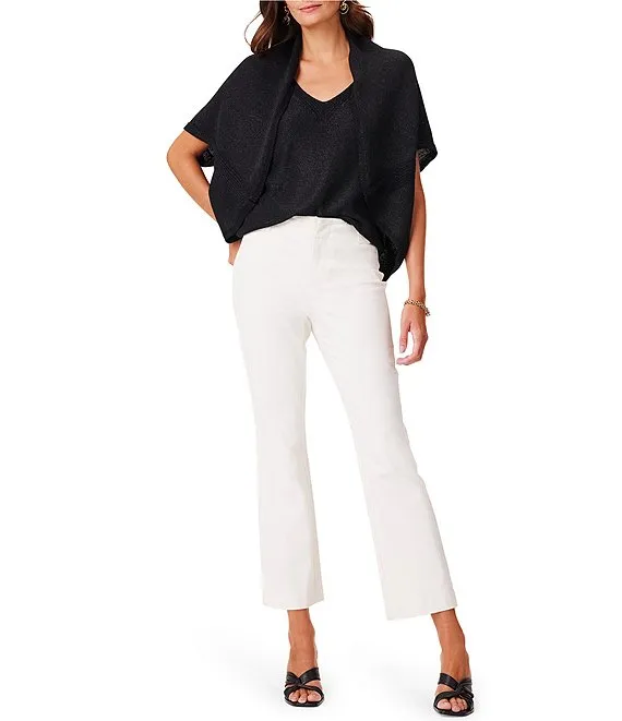 Sleek Cocoon Knit Open Front Short Kimono Sleeve Curved Hem Cardigan