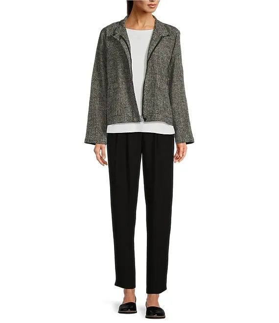 Textured Organic Cotton Tweed Stand Collar Long Sleeve Pocketed Jacket