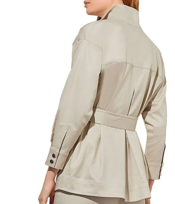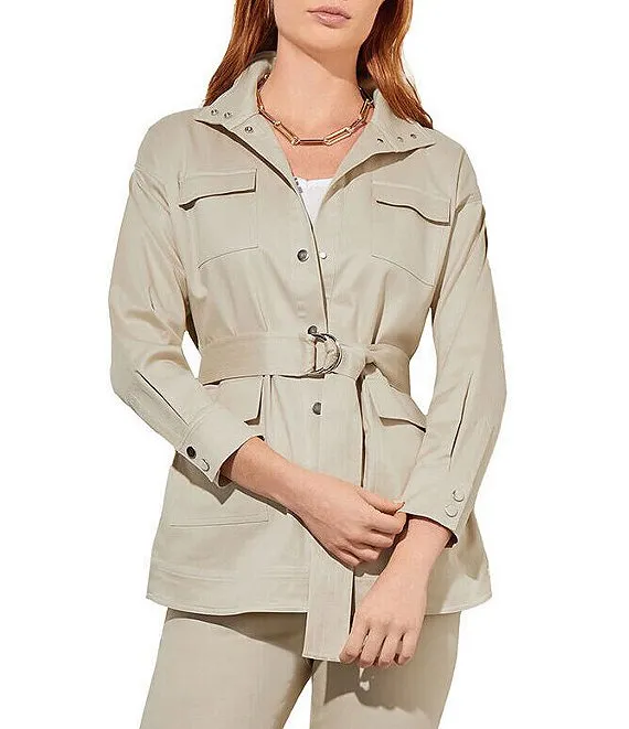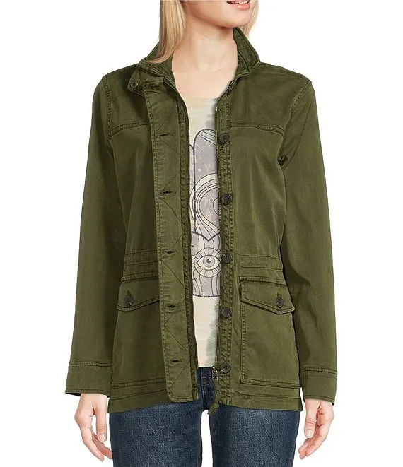 Point Collar Long Sleeve Drawstring Waist Patch Pocket Button Front Utility Jacket