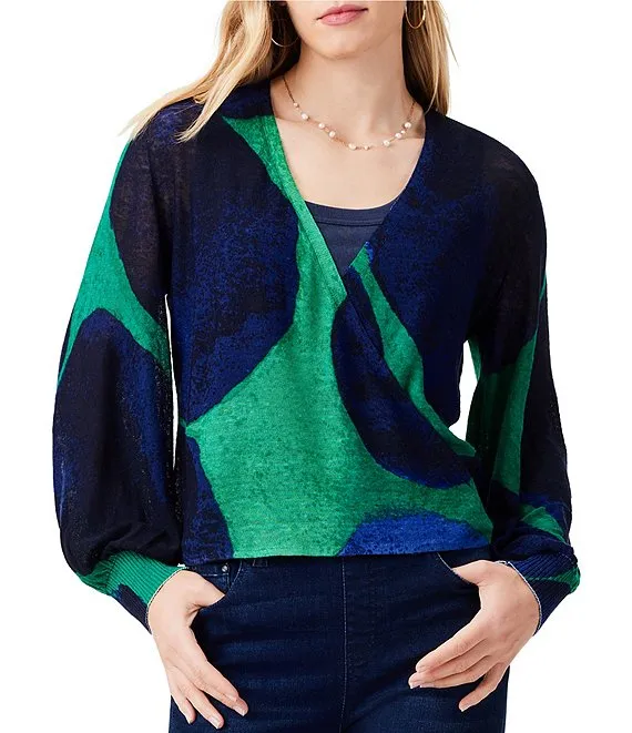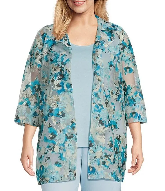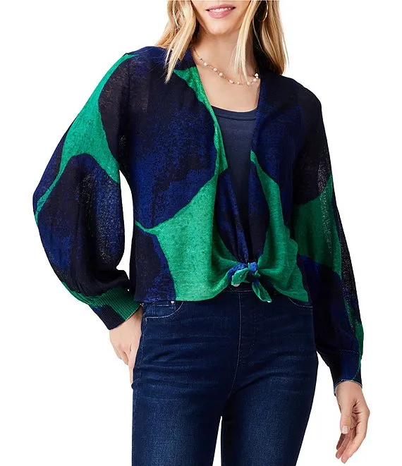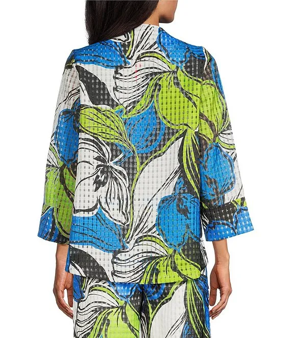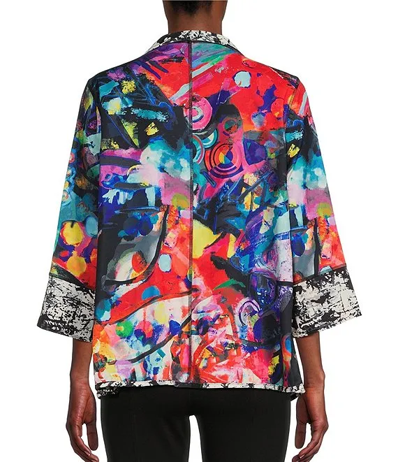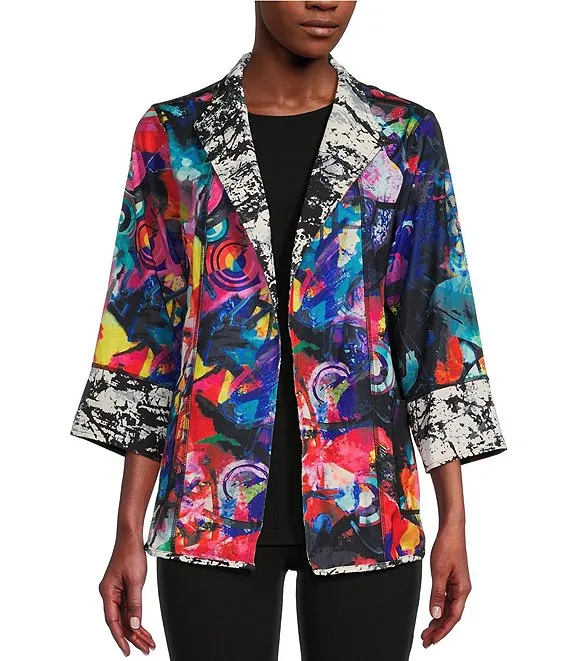 Reversible Abstract Print Open Front 3/4 Sleeve Woven Jacket
