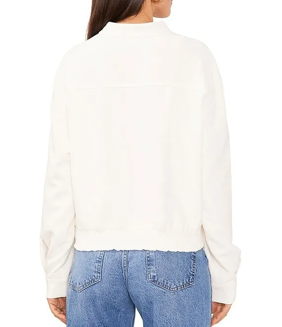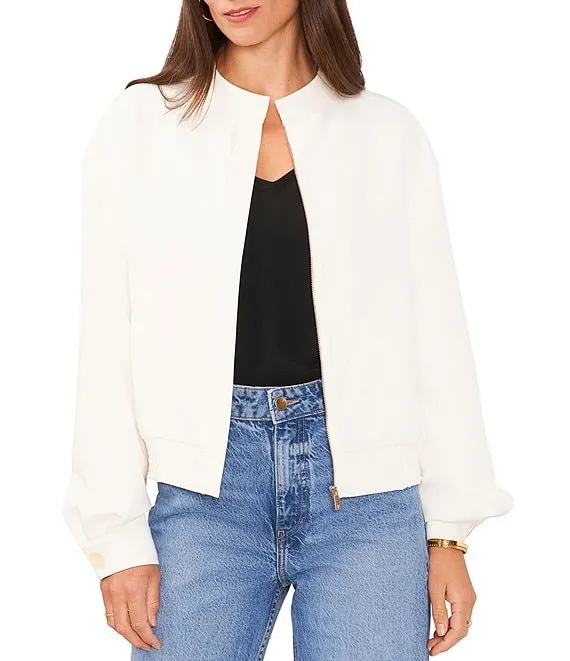 Soho Stretch Twill Banded Collar Long Sleeve Zip Front Bomber Jacket