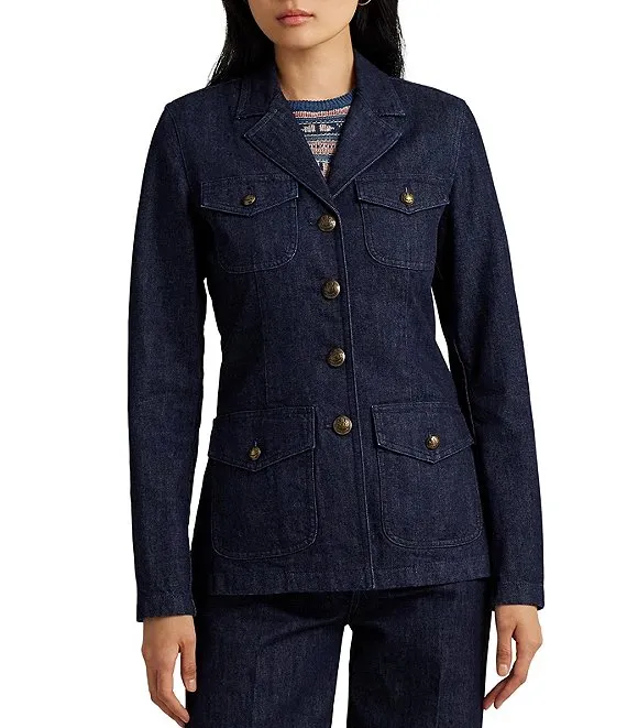 Lauren Ralph Lauren Braylin Denim Long Sleeve Notch Collar Patch Pocket Button Front Jacket