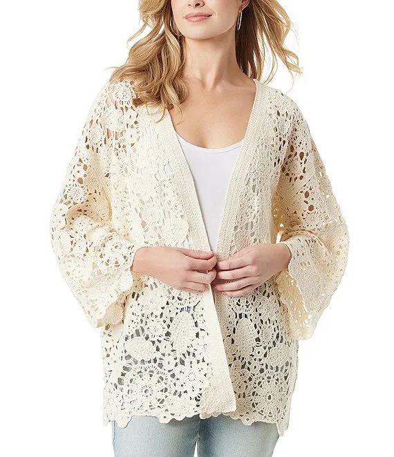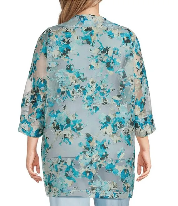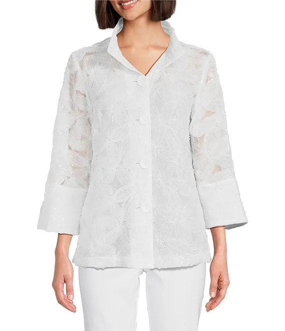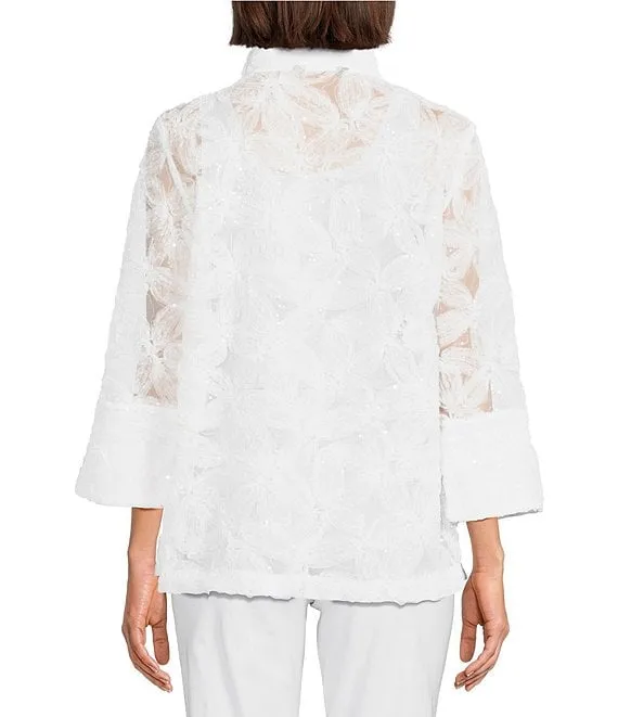 Floral Embroidered Wire Collar 3/4 Bell Sleeve Button-Front Jacket