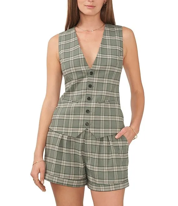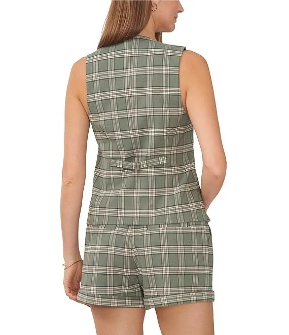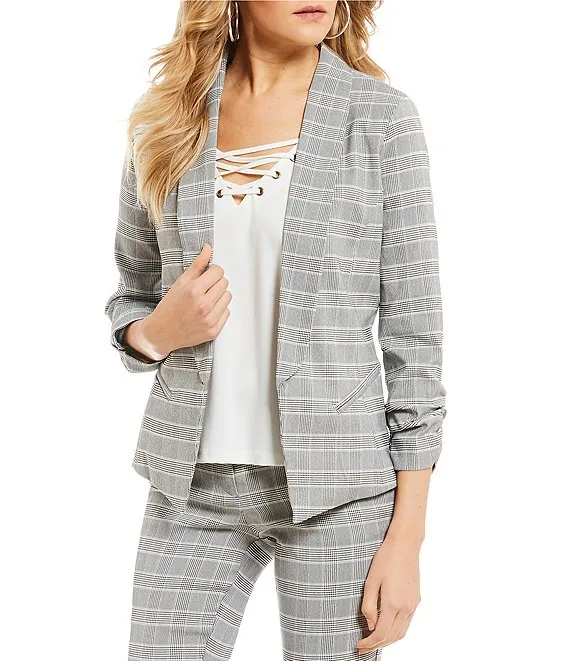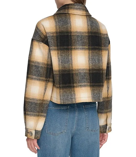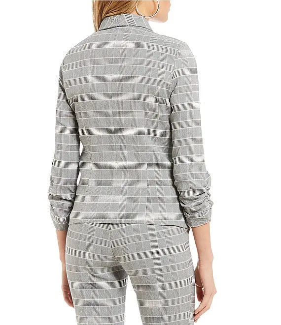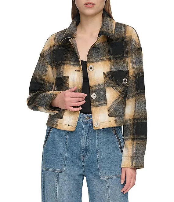 Plaid Point Collar Long Sleeve Button Front Jacket