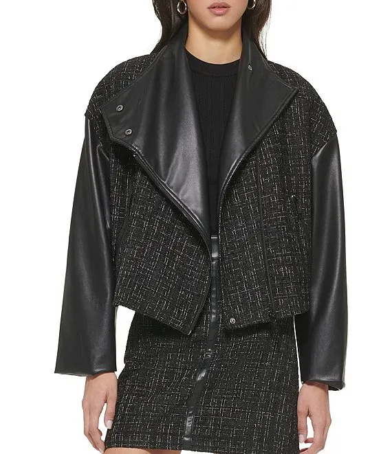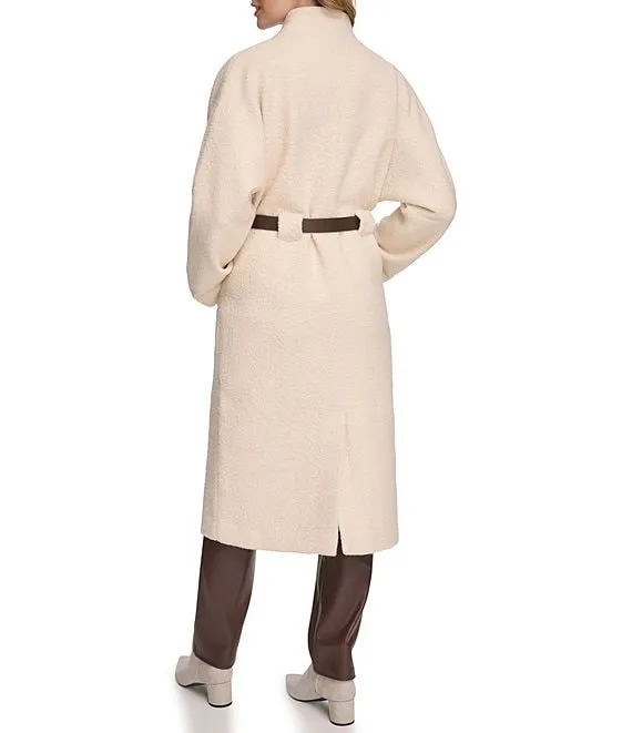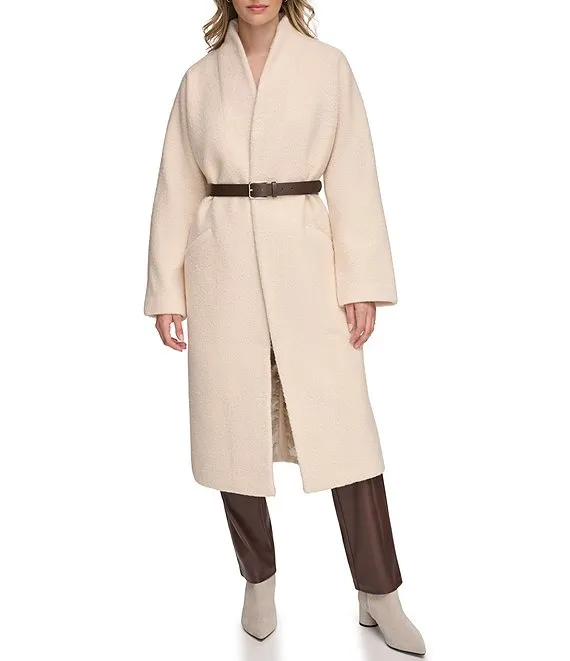Calvin Klein Open Front Boucle Coat With Belt