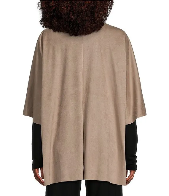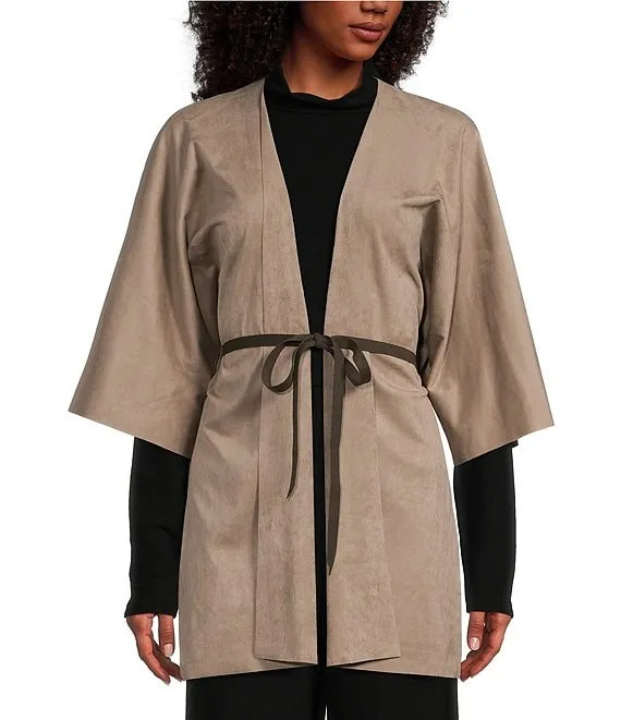 Kit Stretch Faux Suede 3/4 Sleeve Open-Front Belted Cardigan