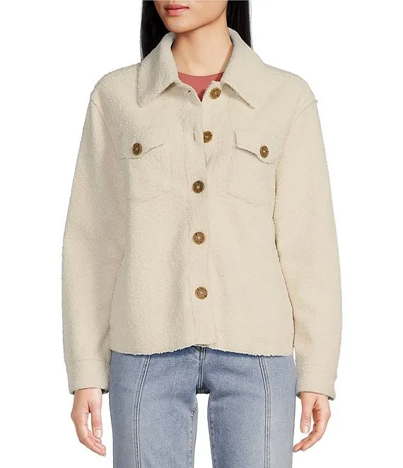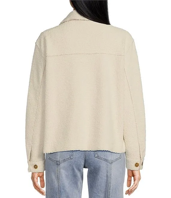 Comfort Corduroy & Sherpa Fleece Point Collar Long Sleeve Pocketed Button-Front Relaxed Shirt Jacket
