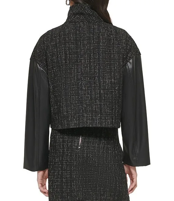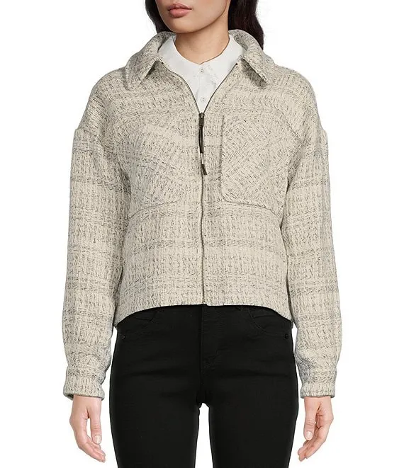 Wool-Blend Zip-Front Crop Shacket