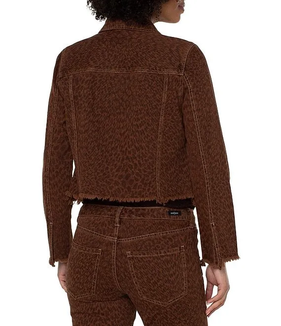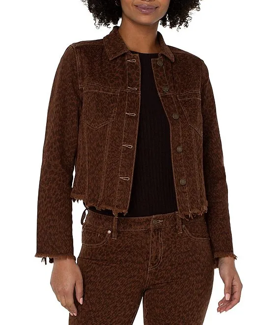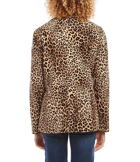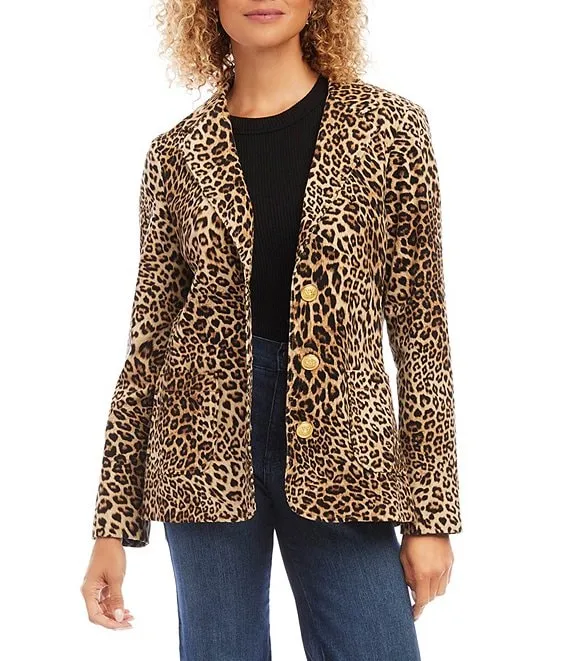 Karen Kane Leopard Print Stretch Corduroy Notch Collar Long Sleeve Button Front Jacket