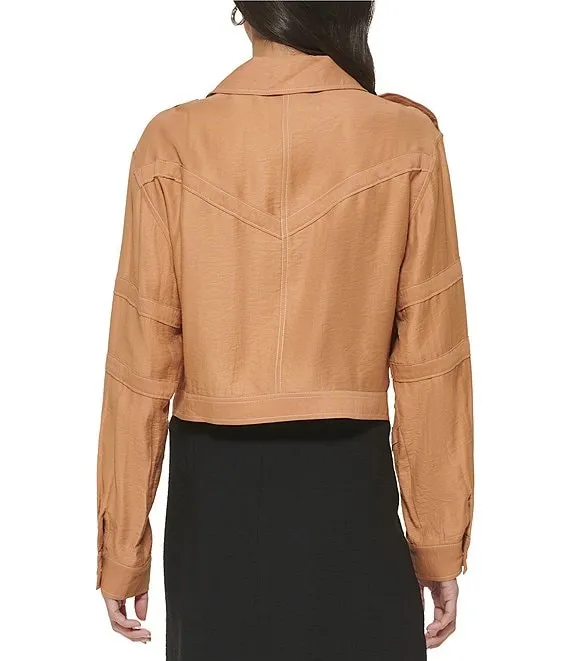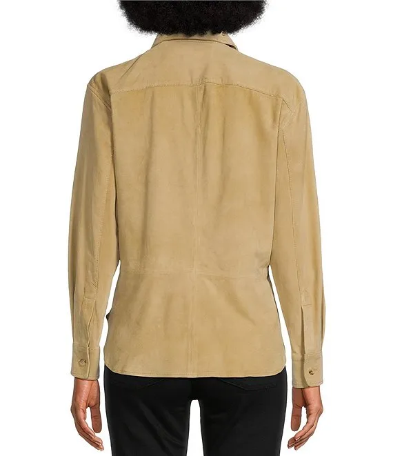 Lauren Ralph Lauren Goat Suede Point Collar Flap Pocket Long Sleeve Jacket