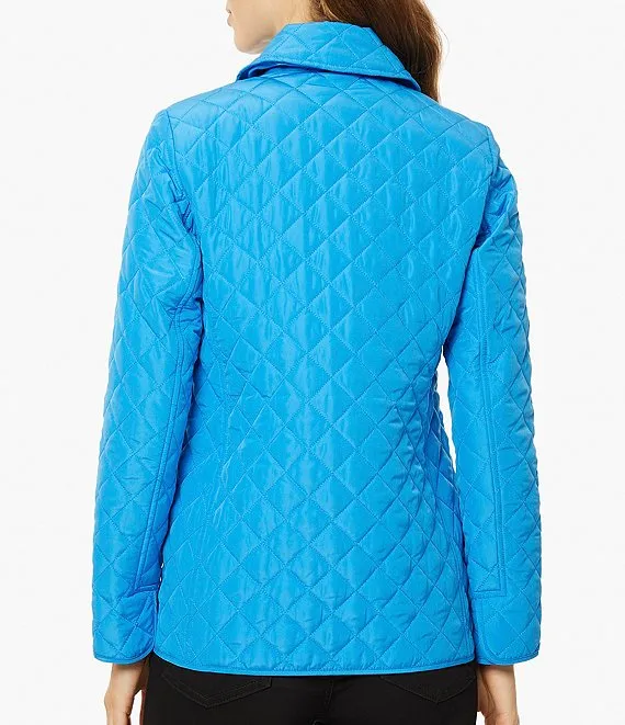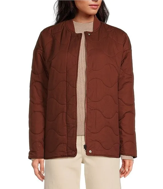 Quilted Crew Neck Long Sleeve Zipper Front Jacket