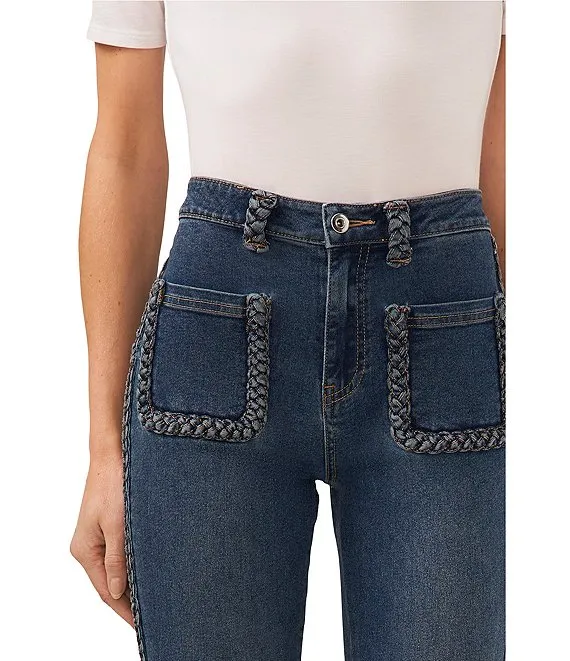 High Waisted Front Patch Pocket Braided Trim Denim Skinny Jeans