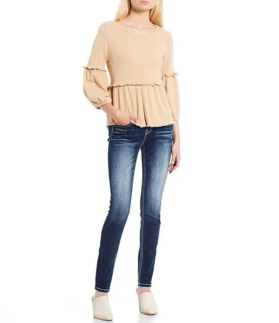 Mid Rise Embellished Beaded "X" Flap Pocket Skinny Jeans