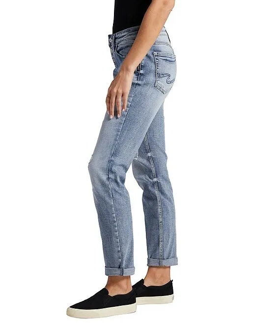 Mid Rise Rolled Cuff Boyfriend Jeans