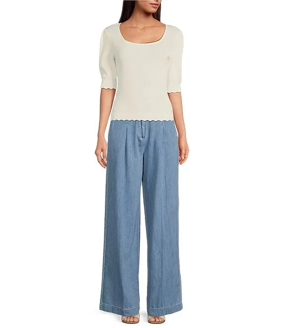 Pleated Mid Rise Wide-Leg Trouser Jeans