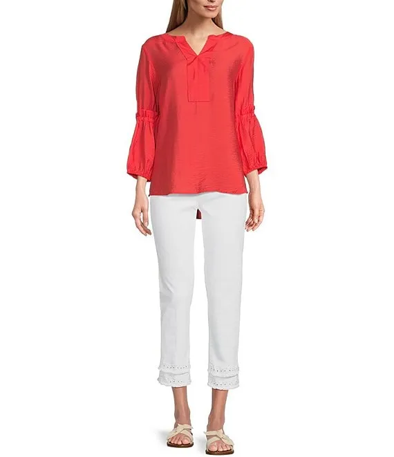 Stretch Denim Eyelet Fringe Hem Pull-On Cropped Jeans