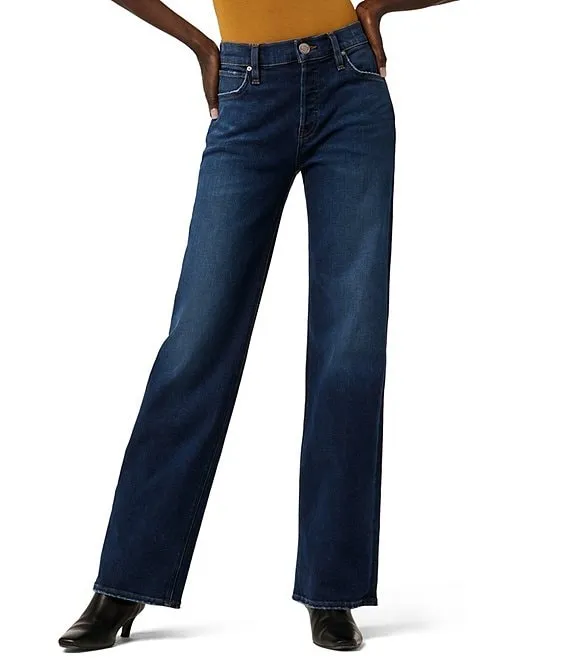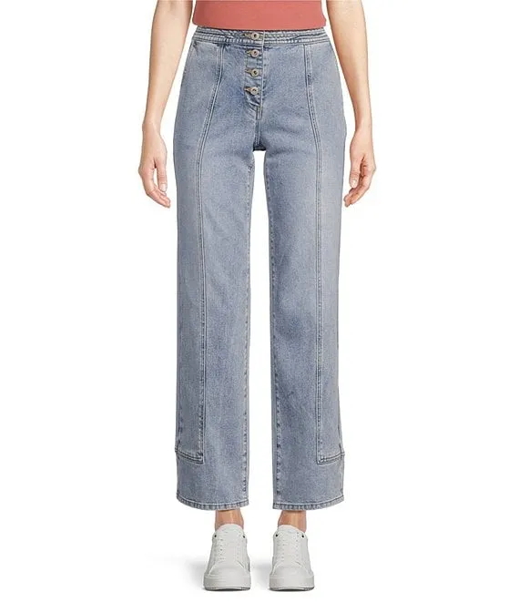 Stretch High Rise Button Front Wide Leg Denim Jeans