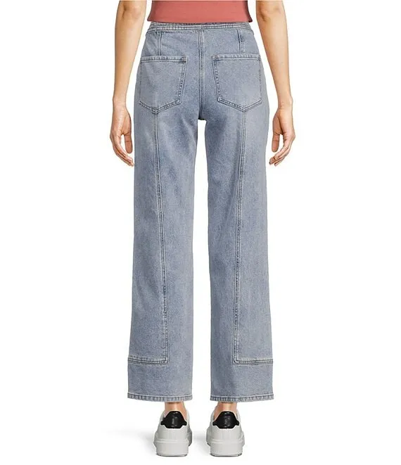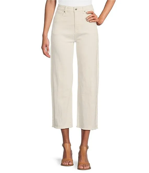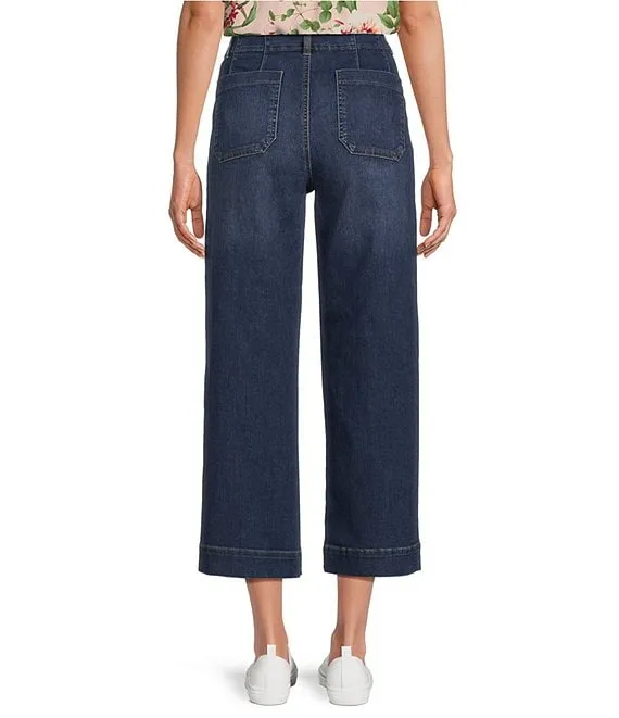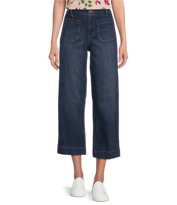 High Rise Wide Leg Patch Pocket Cropped Twill Jeans