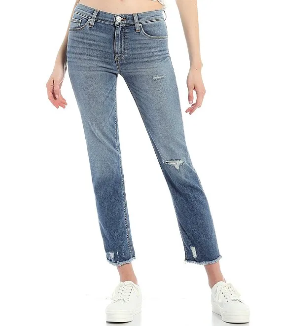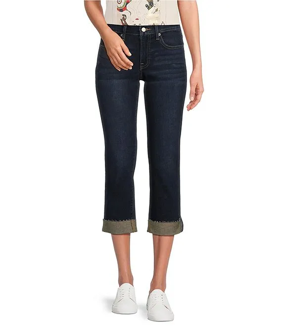 Soho Denim High Rise 5 Pocket Slim Fit Frayed Hem Capri Jeans