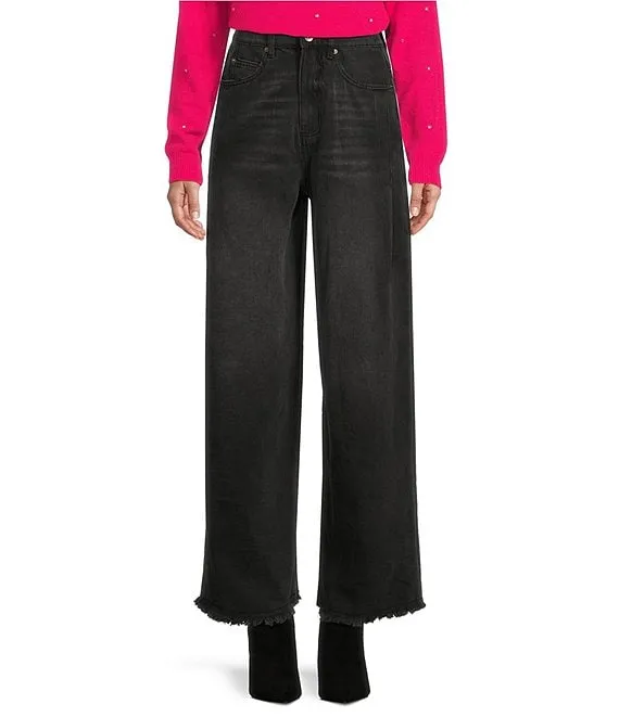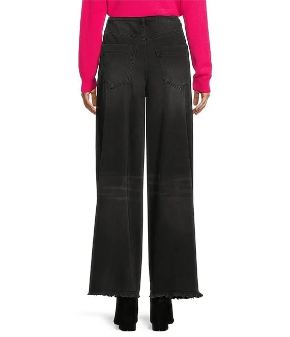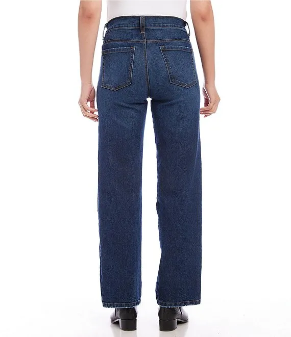 Wide Leg Front Button Pocket Jeans