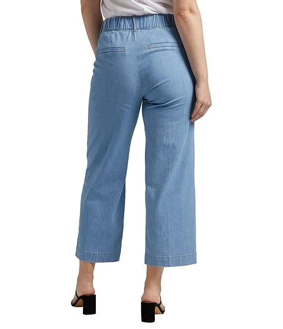 Utility Lightweight Denim Chambray Wide Leg Cropped Jeans