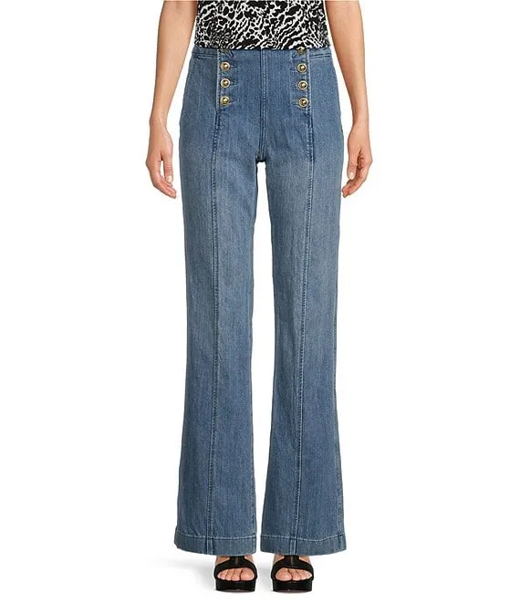 MICHAEL Michael Kors High Rise Flare Leg Pocketed Sailor Jeans
