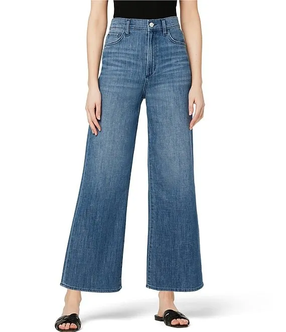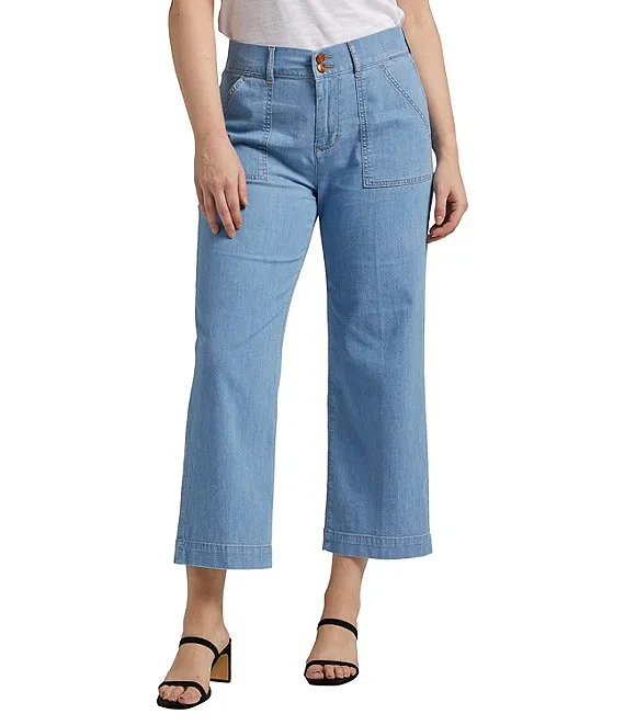Eco Stretch Denim High Rise Wide Leg Cropped Jeans