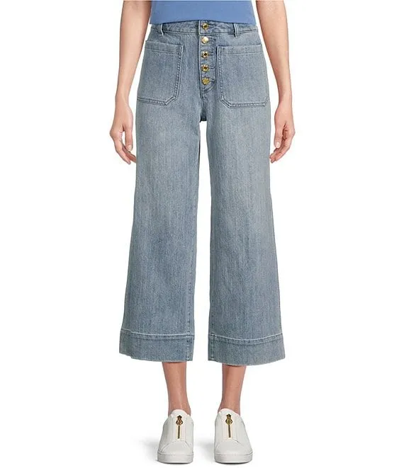 MICHAEL Michael Kors High Rise Wide Leg Patch Pocket Button Fly Crop Jeans