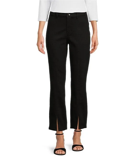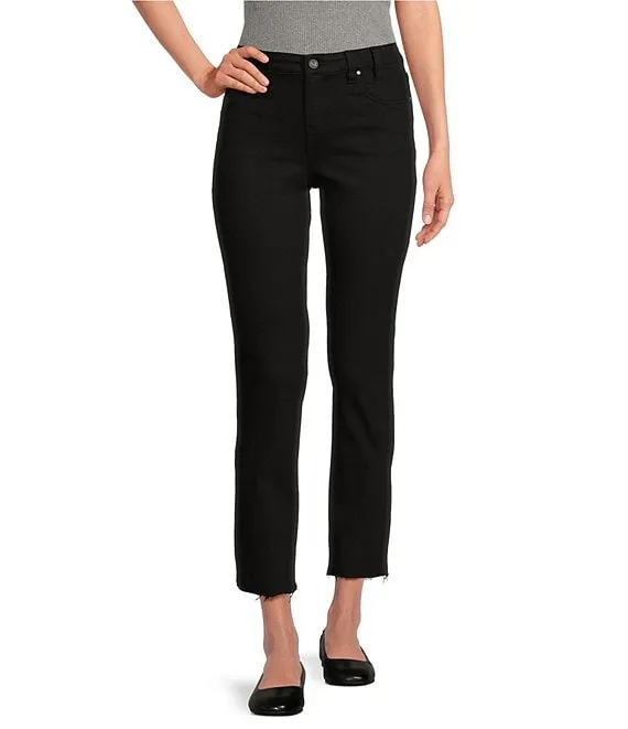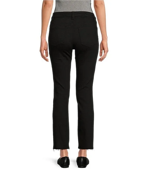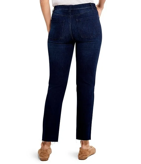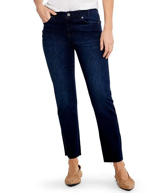 Mid Rise Straight Slim-Leg Raw Hem Denim Jeans