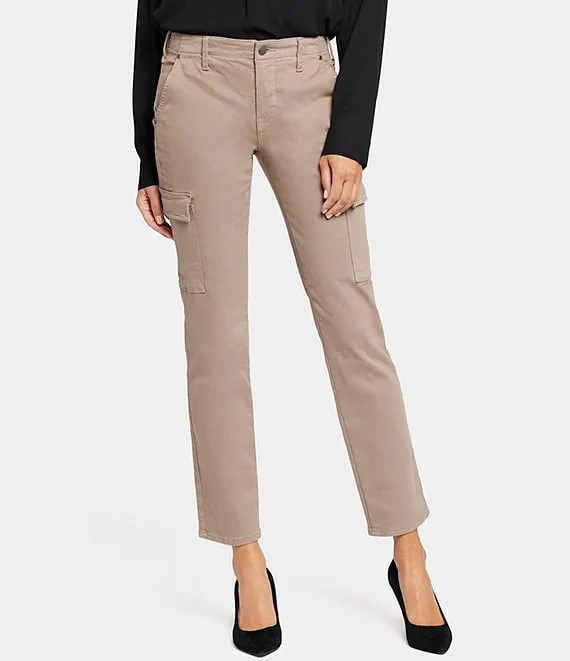 Mid Rise Straight Leg Slim Fit Stretch Denim Cargo Jeans