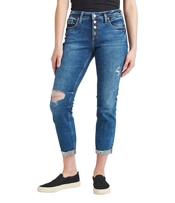 Chloe Mid Rise Slim Fit Capri Stretch Denim Jeans