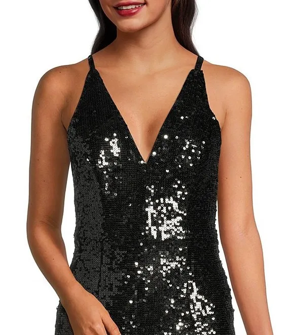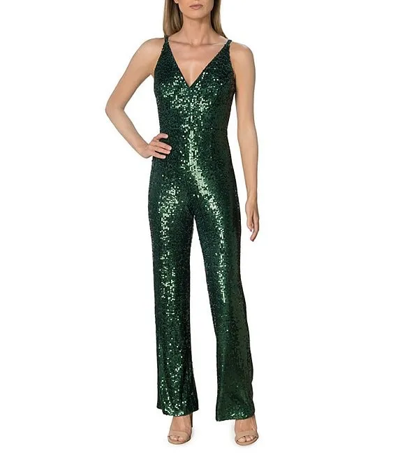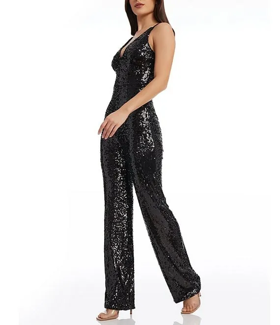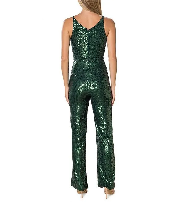 Charlie Plunging V-Neck Wide Leg Sequin Jumpsuit