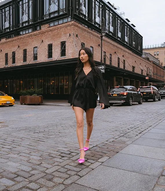 Farrah Surplice V-Neck Long Bell Sleeve Short Romper