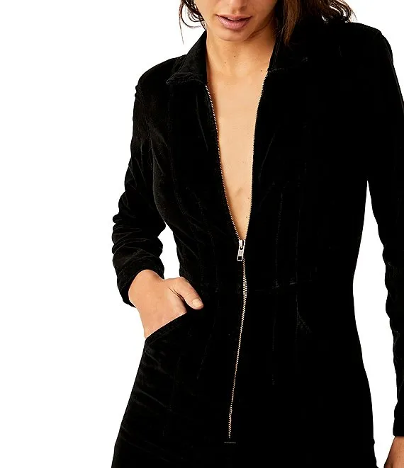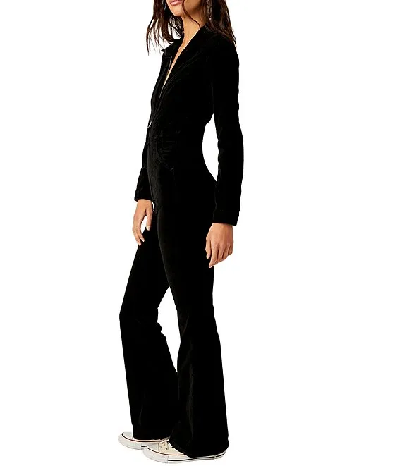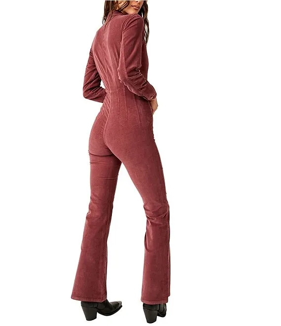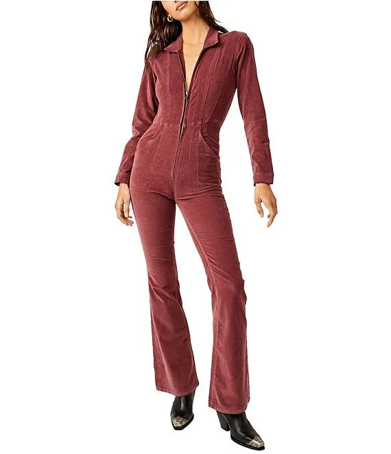 Jayde Cord Zip Front Collar Long Sleeve Flare Leg Jumpsuit