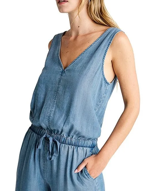 Kali Chambray V-Neck Sleeveless Jumpsuit
