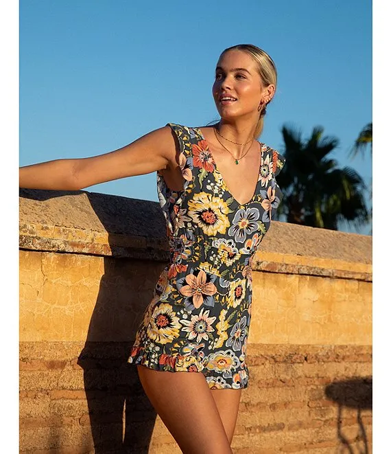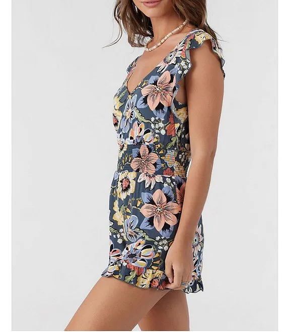 Katy Floral Print Flutter Sleeve Ruffle Hem Romper
