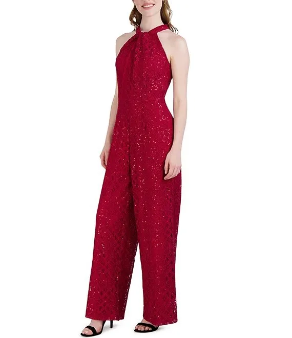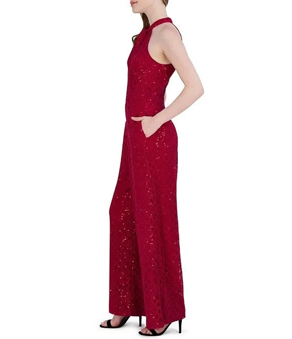 Lace Sequin Halter Neck Sleeveless Jumpsuit