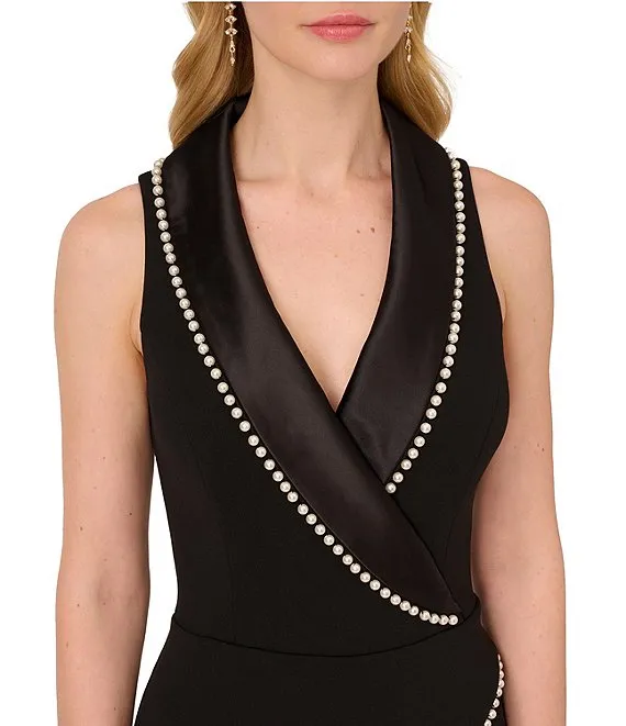 Adrianna Papell Pearl Trimmed Stretch Tuxedo Jumpsuit