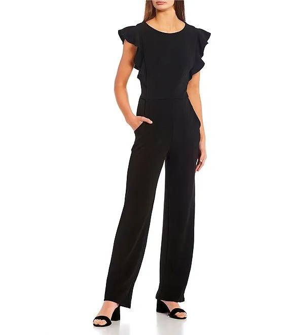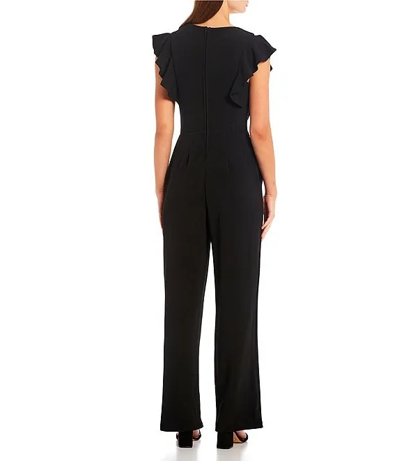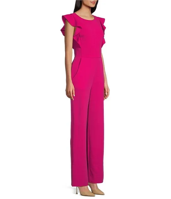 Ruffle Sleeve Boat Neck Flare Leg Jumpsuit