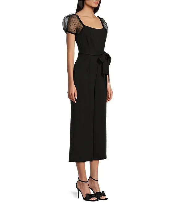Short Puff Sleeve Bow Cropped Jumpsuit