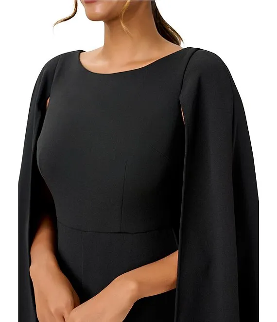 Adrianna Papell Stretch Crepe Boat Neck Cape Back Slim Leg Jumpsuit